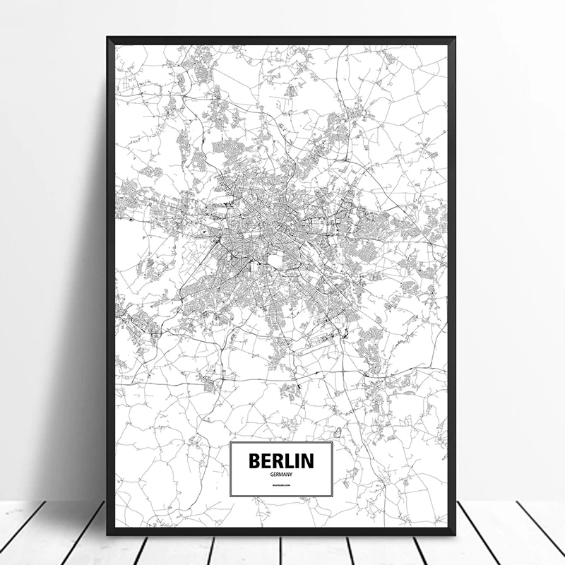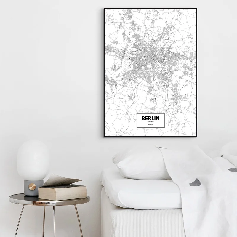 Berlin, Germany Black White Custom World City Map Poster Canvas Print Nordic Style Wall Art Home Decor Wall Decor