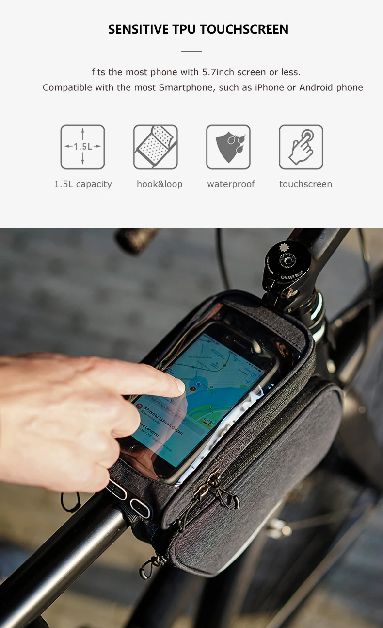Roswheel 121462 écran tactile résistant à l'eau vélo vélo cadre avant Tube supérieur Double sac sacoche avec 5.7 “coque de téléphone portable