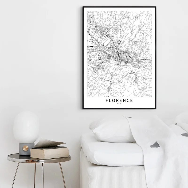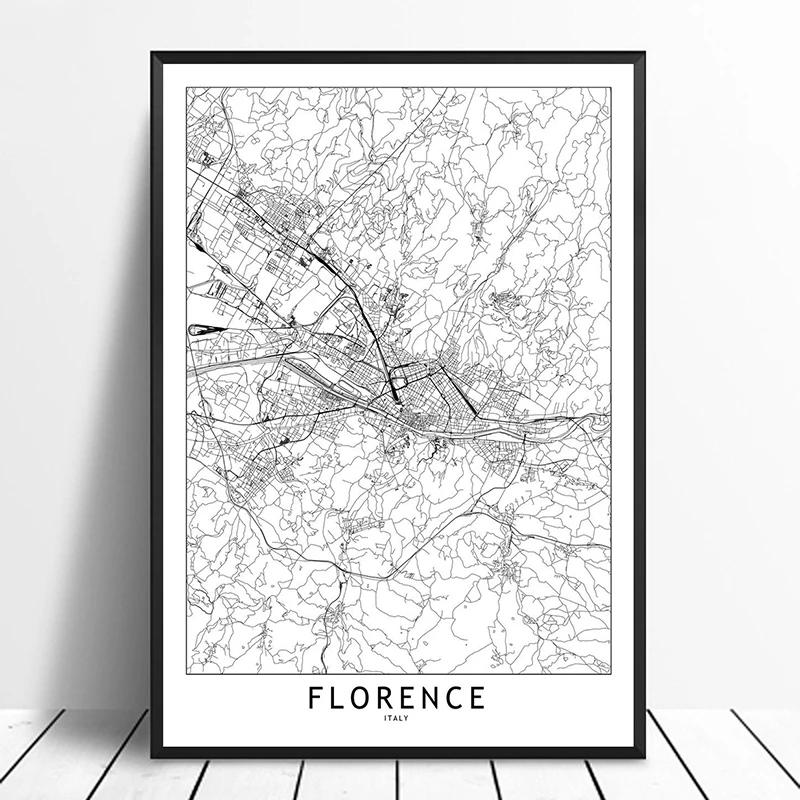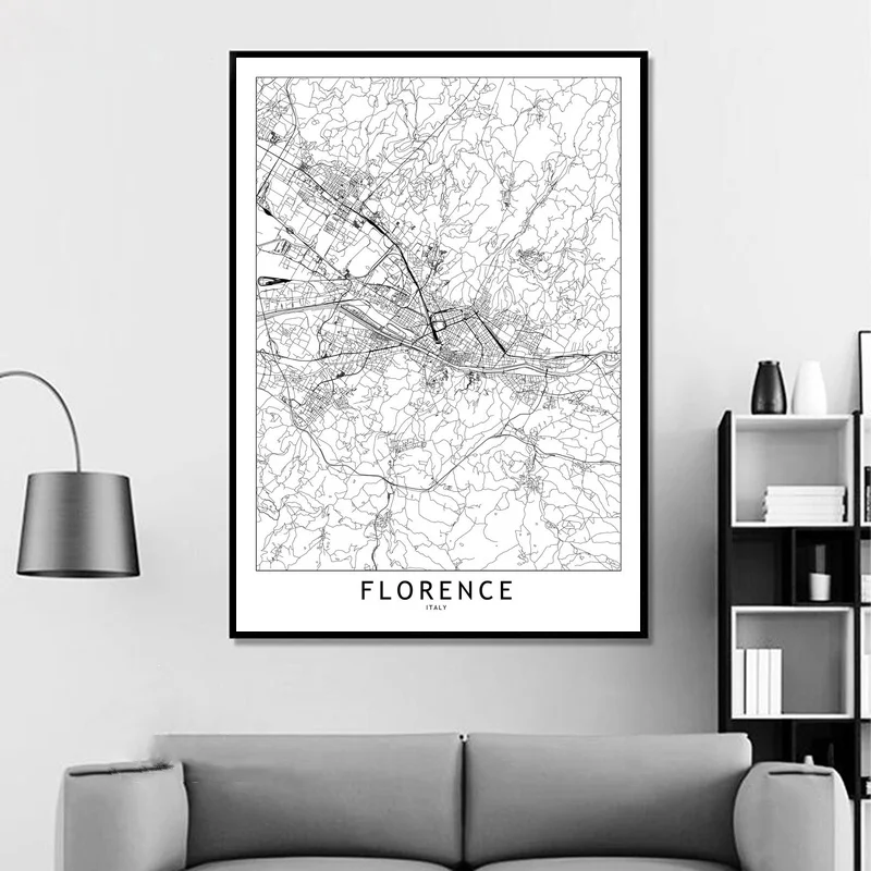 Florence Black White Custom World City Map Posters Prints Nordic Style Wall Art Pictures Home Decor Canvas Painting