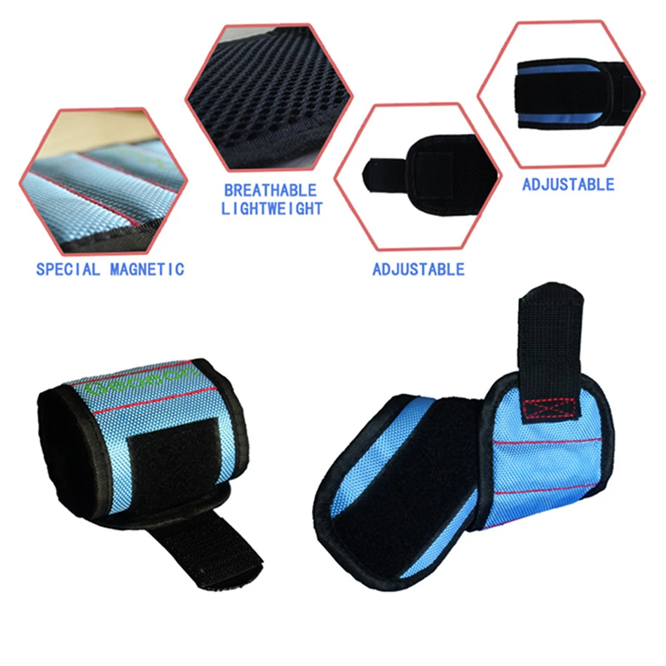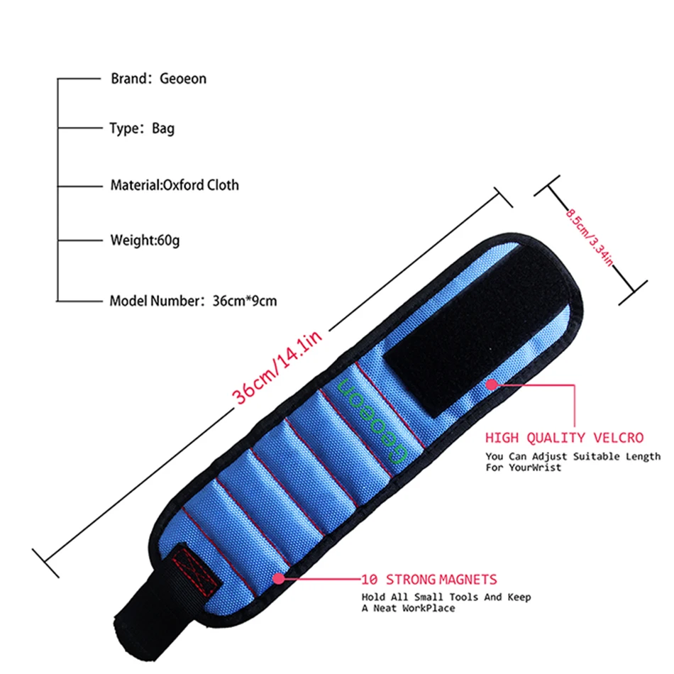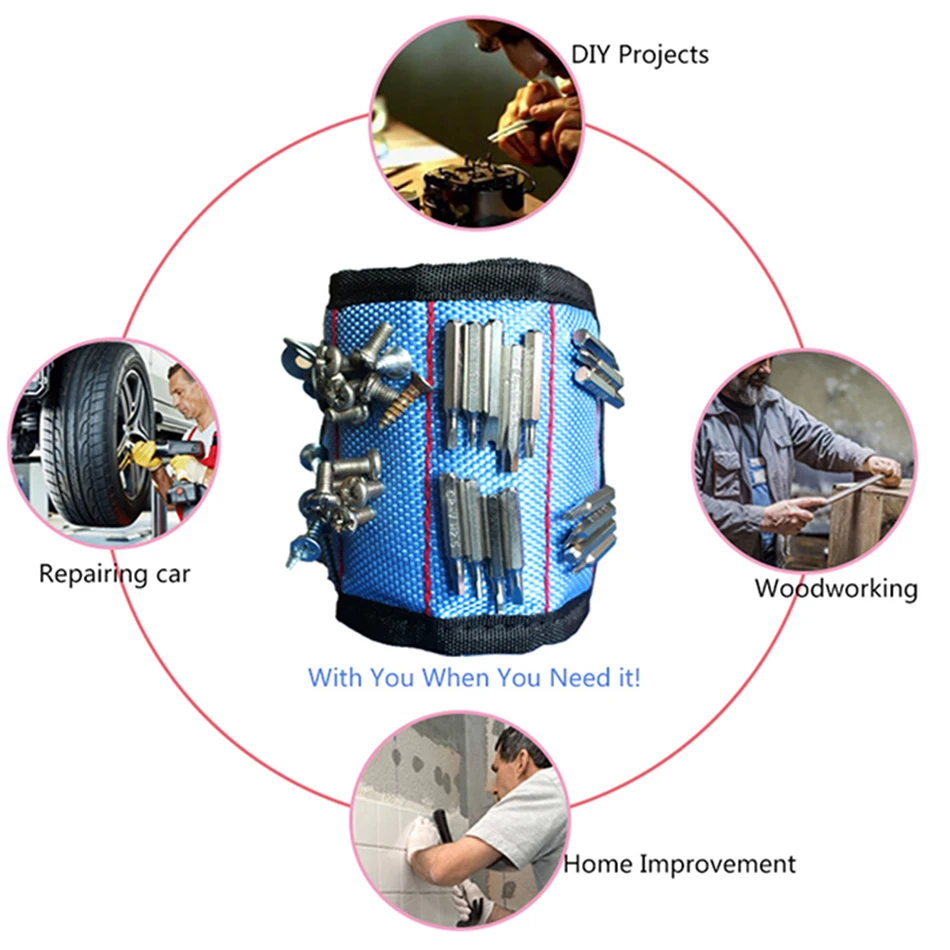 5.Great gear for handyman, do it yourself, auto repair & home projects. Descriptions: Color:Black,Blue,Red,Light blue,Yellow,Pink Material:Oxford Cloth+ Five rows of magnets Product Size:38*9cm Package Size:15*15*5cm