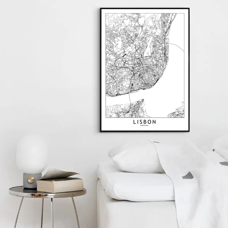 Lisbon Black White Custom World City Map Posters Prints Nordic Style Wall Art Pictures Home Decor Canvas Painting
