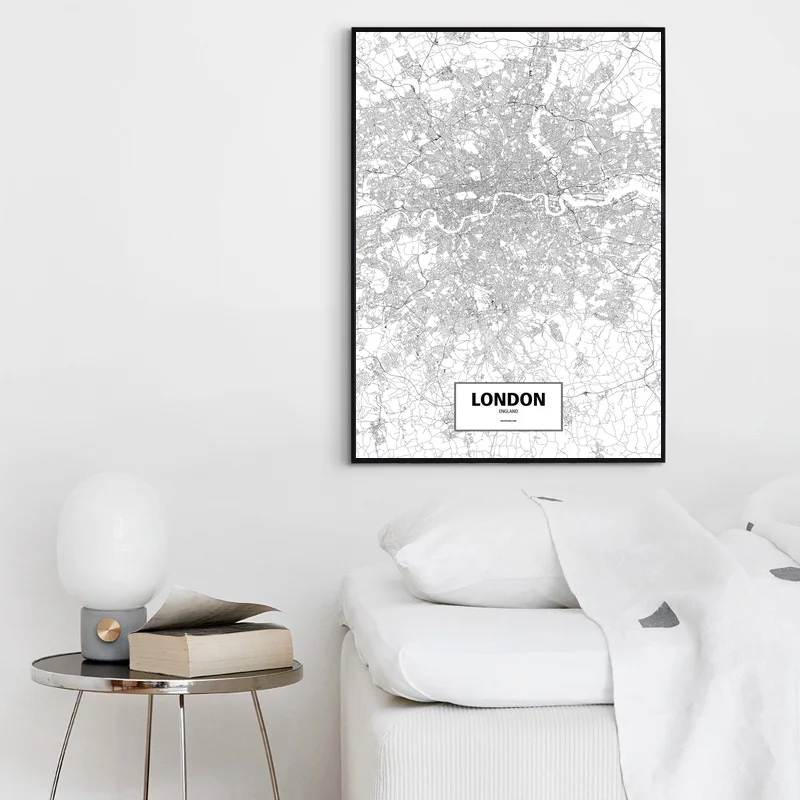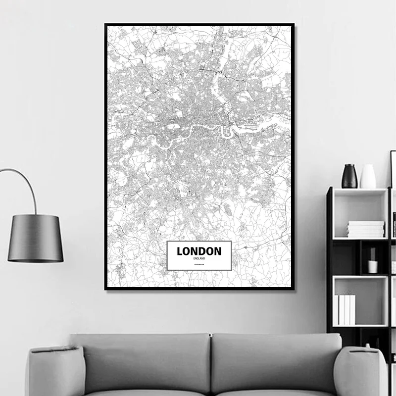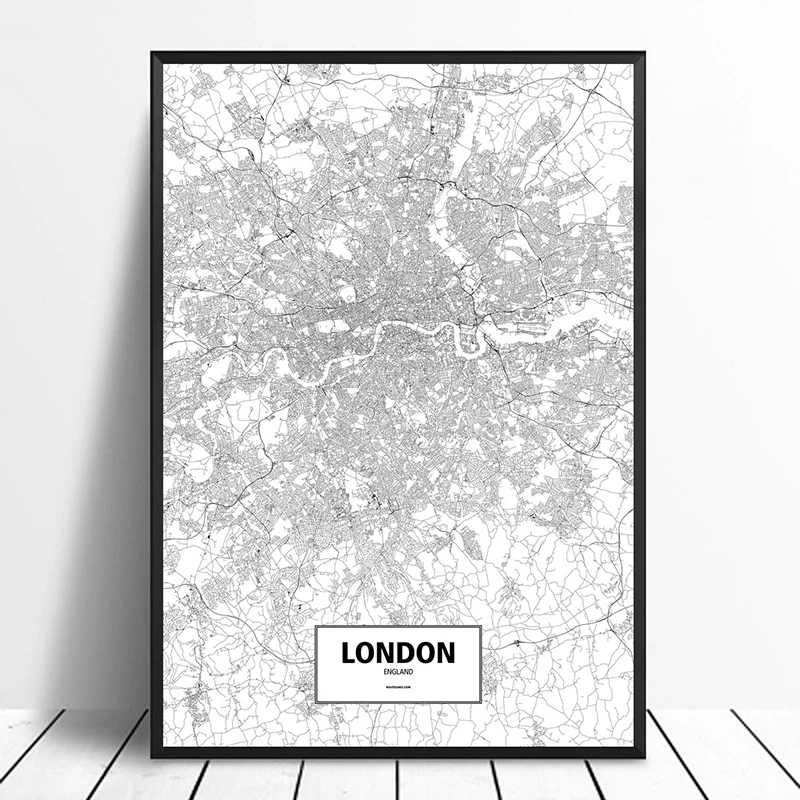 London, England Black White Custom World City Map Poster Canvas Print Nordic Style Wall Art Home Decor