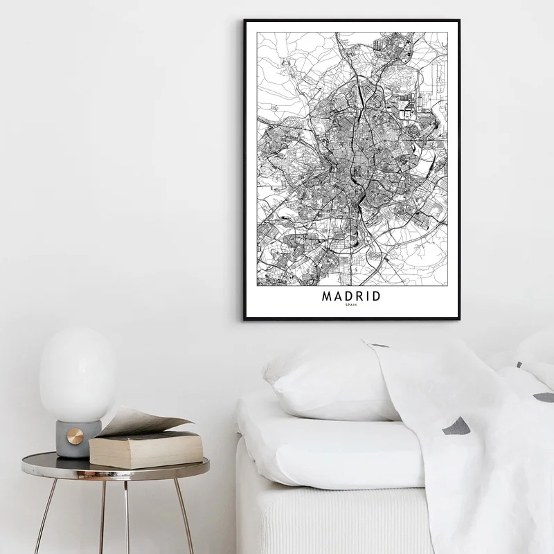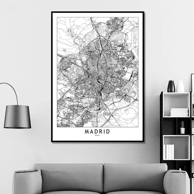 Madrid Black White Custom World City Map Posters Prints Nordic Style Wall Art Pictures Home Decor Canvas Painting
