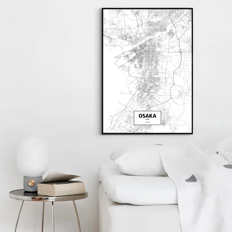 Osaka, Japan Black White Custom World City Map Poster Canvas Print Nordic Style Wall Art Home Decor