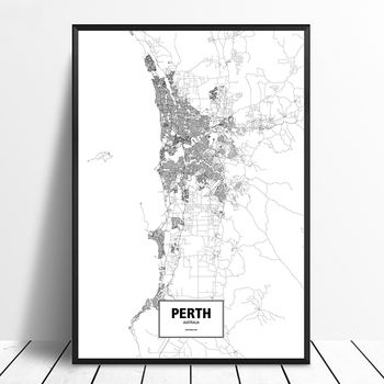 Perth, Australia Black White Custom World City Map Poster Canvas Print Nordic Style Wall Art Home Decor
