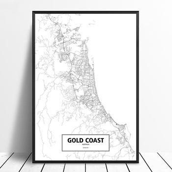 Gold Coast, Australia Black White Custom World City Map Poster Canvas Print Nordic Style Wall Art Home Decor