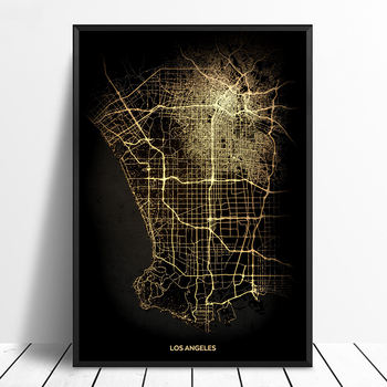 Los Angeles City Light Maps Custom World City Map Posters Canvas Prints Nordic Style Wall Art Home Decor