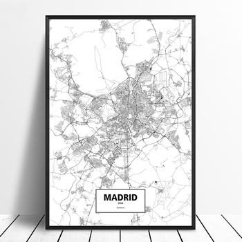 Madrid, Spain Black White Custom World City Map Poster Canvas Print Nordic Style Wall Art Home Decor