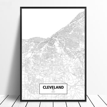 CLEVELAND, OHIO, UNITED STATES Black White Custom World City Map Poster Canvas Prints Nordic Style Wall Art Home Decor