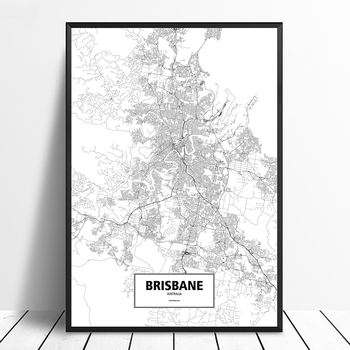 Brisbane, Australia Black White Custom World City Map Poster Canvas Print Nordic Style Wall Art Home Decor Wall Decor