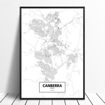 Canberra, Australia Black White Custom World City Map Poster Canvas Print Nordic Style Wall Art Home Decor Wall Decor