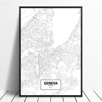 Geneva, Switzerland Black White Custom World City Map Poster Canvas Print Nordic Style Wall Art Home Decor