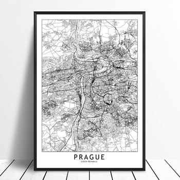 Prague Black White Custom World City Map Posters Prints Nordic Style Wall Art Pictures Home Decor Canvas Painting