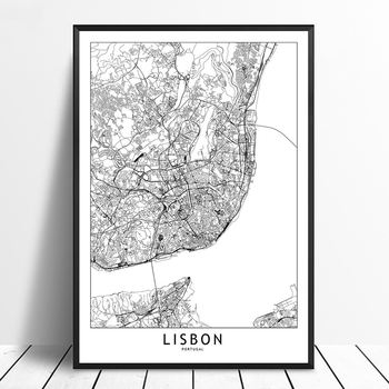 Lisbon Black White Custom World City Map Posters Prints Nordic Style Wall Art Pictures Home Decor Canvas Painting