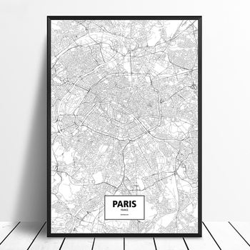 Paris, France Black White Custom World City Map Poster Canvas Print Nordic Style Wall Art Home Decor