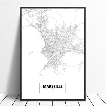 Marseille, France Black White Custom World City Map Poster Canvas Print Nordic Style Wall Art Home Decor