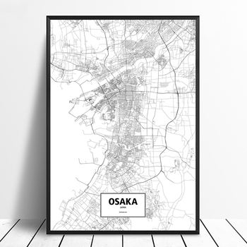 Osaka, Japan Black White Custom World City Map Poster Canvas Print Nordic Style Wall Art Home Decor