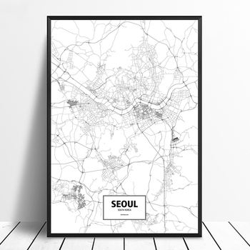 Seoul South Korea Black White Custom World City Map Poster Canvas Print Nordic Style Wall Art Home Decor