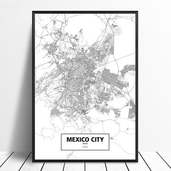Mexico City, Mexico Black White Custom World City Map Poster Canvas Print Nordic Style Wall Art Home Decor