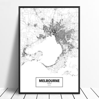 Melbourne, Australia Black White Custom World City Map Poster Canvas Print Nordic Style Wall Art Home Decor
