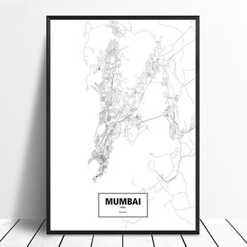 Mumbai, India Black White Custom World City Map Poster Canvas Print Nordic Style Wall Art Home Decor