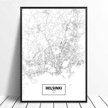 Helsinki, Finland Black White Custom World City Map Poster Canvas Print Nordic Style Wall Art Home Decor