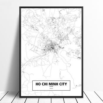 Ho Chi Minh City, Vietnam Black White Custom World City Map Poster Canvas Print Nordic Style Wall Art Home Decor
