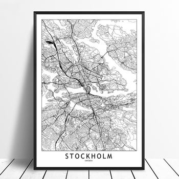 Stockholm Black White Custom World City Map Posters Prints Nordic Style Wall Art Pictures Home Decor Canvas Painting