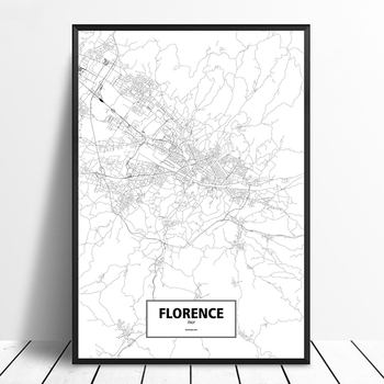 Florence, Italy Black White Custom World City Map Poster Canvas Print Nordic Style Wall Art Home Decor