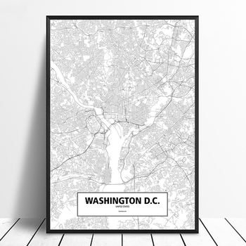 Washington D.C., United States Black White Custom World City Map Poster Canvas Print Nordic Style Wall Art Home Decor