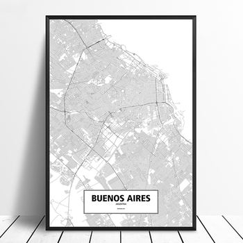 Buenos Aires, Argentina Black White Custom World City Map Poster Canvas Print Nordic Style Wall Art Home Decor Wall Decor