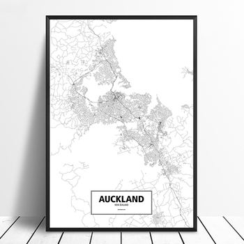 Auckland, New Zealand Black White Custom World City Map Poster Canvas Print Nordic Style Wall Art Home Decor