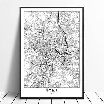 Rome Black White Custom World City Map Posters Prints Nordic Style Wall Art Pictures Home Decor Canvas Painting