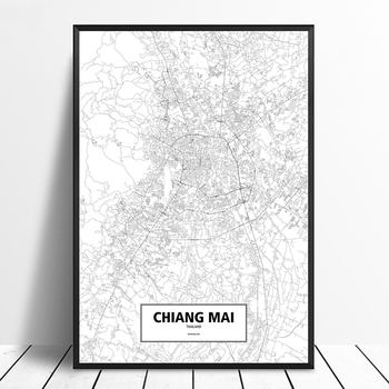 Chiang Mai, Thailand Black White Custom World City Map Poster Canvas Print Nordic Style Wall Art Home Decor