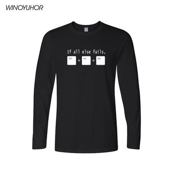 New Spring Funny If All Else Fails CTRL ALT DEL Tech Support Geek T Shirts Men Joke Gift T-shirts Cotton Long Sleeve Fashion