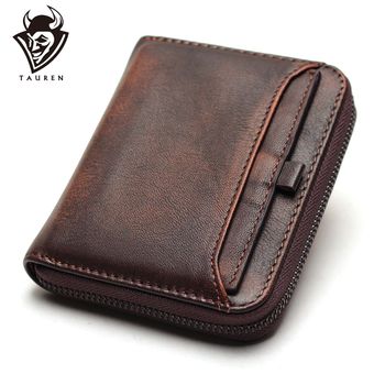Men’s Short Wallet First Layer Leather Wallet Men’s Retro Wallet Vertical Zipper Casual Youth Small Purse
