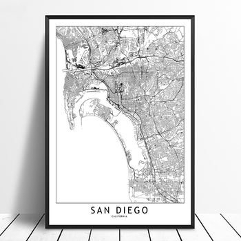 San Diego Black White Custom World City Map Posters Prints Nordic Style Wall Art Pictures Home Decor Canvas Painting