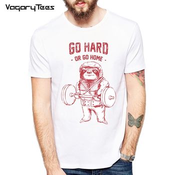 Hot Sale Fashion Sloth/Cat/Frenchie Exercise Hard Design Mne’s Creative Printed T-shirt Short Sleeve Male Funny Tops Hipster Tee