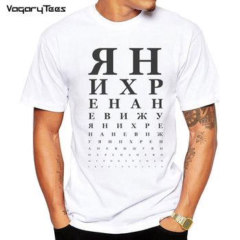 Creative Russian Letter T shirt Men Russian Eye Chart Funny Printed Tops Short Sleeve O-neck Tshirt