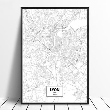 Lyon, France Black White Custom World City Map Poster Canvas Print Nordic Style Wall Art Home Decor