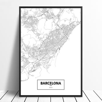 Barcelona, Spain Black White Custom World City Map Poster Canvas Print Nordic Style Wall Art Home Decor Wall Decor