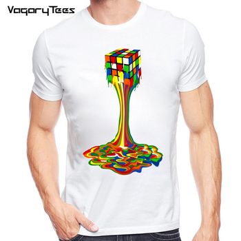 Geometric Cube T shirts Men Creative Fashion Magic Cube T-shirt Tee Tops The Rainbow Abstraction melted magic cube Geek tshirt