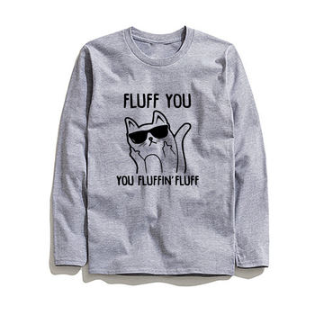 COOLMIND CA0213L 100% cotton long sleeve funny cat print men T shrit casual o-neck men tshirt cool loose t-shirt tee shirts