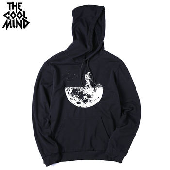 THE COOLMIND street style loose casual moon design printed men hoodies long sleeve knitted men hooded sweatshirt