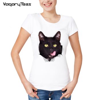 Hungry Black Cat break out vivid 3d tshirt women 2019 new white casual breathable t shirt femme Shorthair cat funny t-shirt
