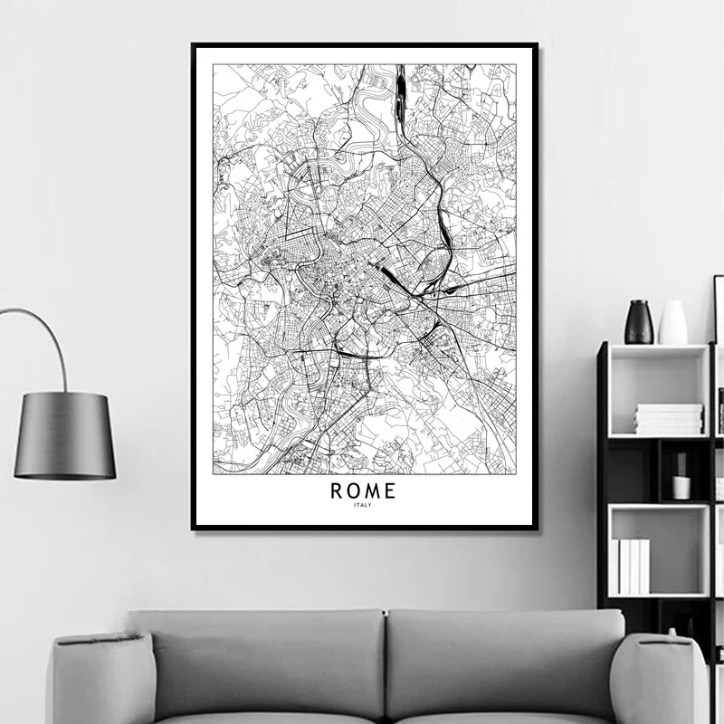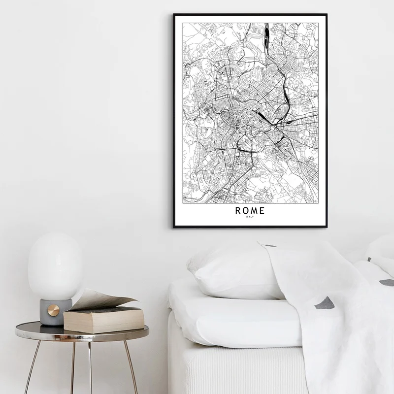 Rome Black White Custom World City Map Posters Prints Nordic Style Wall Art Pictures Home Decor Canvas Painting