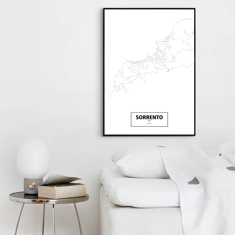 Sorrento Italy Black White Custom World City Map Poster Canvas Print Nordic Style Wall Art Home Decor