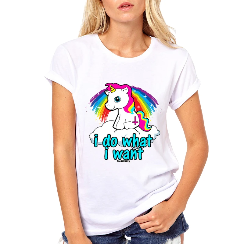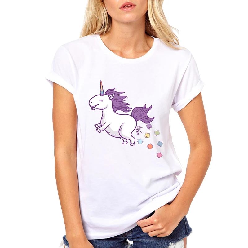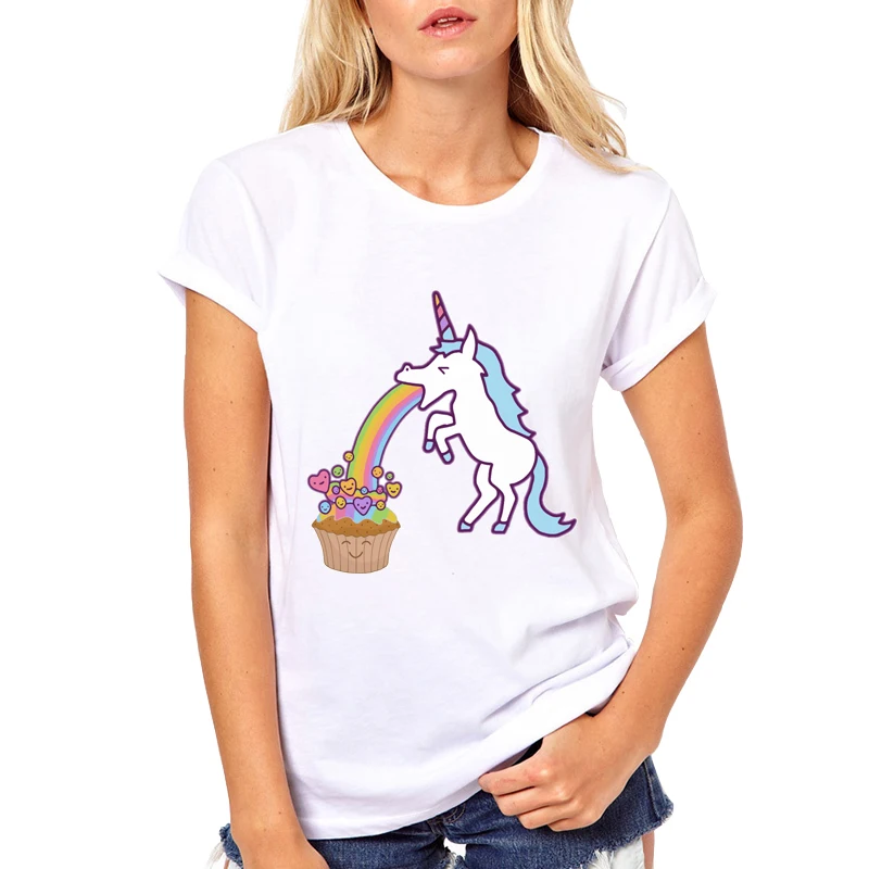 Super Cute Little unicorn t-shirt Women Kawaii cute girl T shirt Female Spitting rainbow animal Clothing Funny TShirt Top Tee