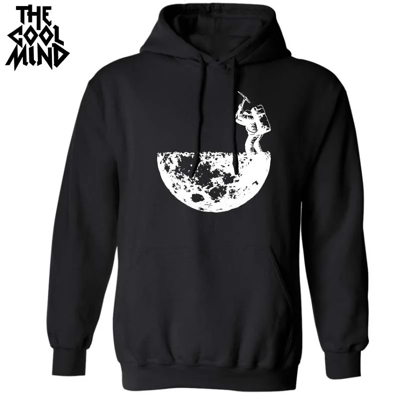 THE COOLMIND Casual cotton blend loose style men hooded hoodies digging the moon printed long sleeve new mens hooded sweatshirts