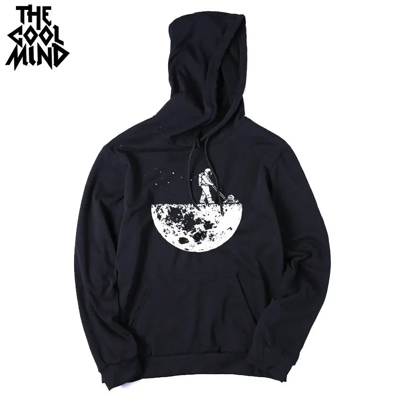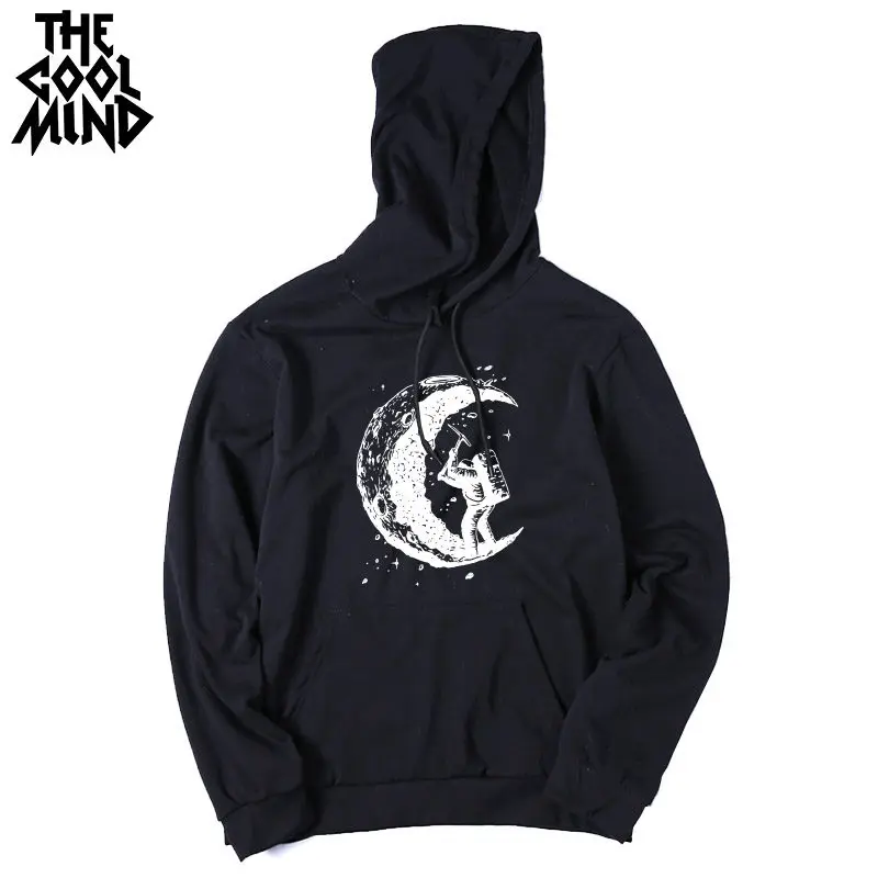 THE COOLMIND street style loose casual moon design printed men hoodies long sleeve knitted men hooded sweatshirt